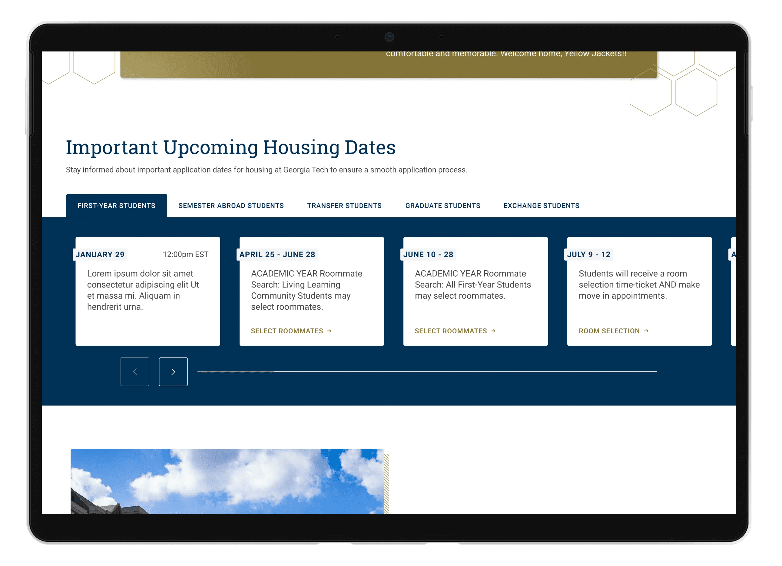 Insight: While users loved the detailed dorm pages, 25% felt lost regarding the timeline of when to apply, when to expect deadlines to hit, etc.